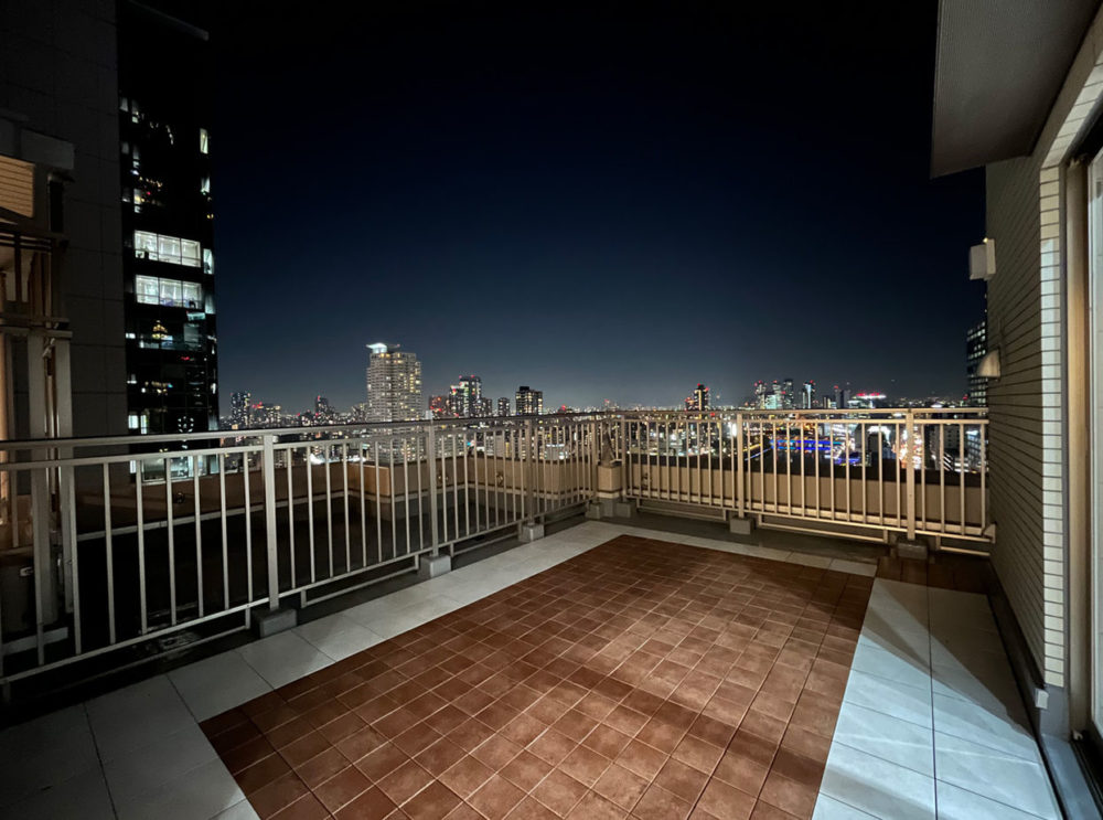 タワーマンションによくあるラグジュアリーなテイストより、少し落ち着きのあるシャープな意匠にした点もこだわりポイントです。最上階で大きなバルコニーがあり、そちらで素敵なカフェタイムをお過ごし頂ける様に置き型タイルを設置させて頂きました。夏になると有名な花火が見れる特別なお部屋で、そのイベントには私たちも是非お邪魔させて頂きたいです(^^)